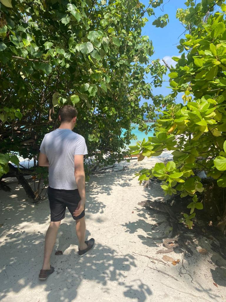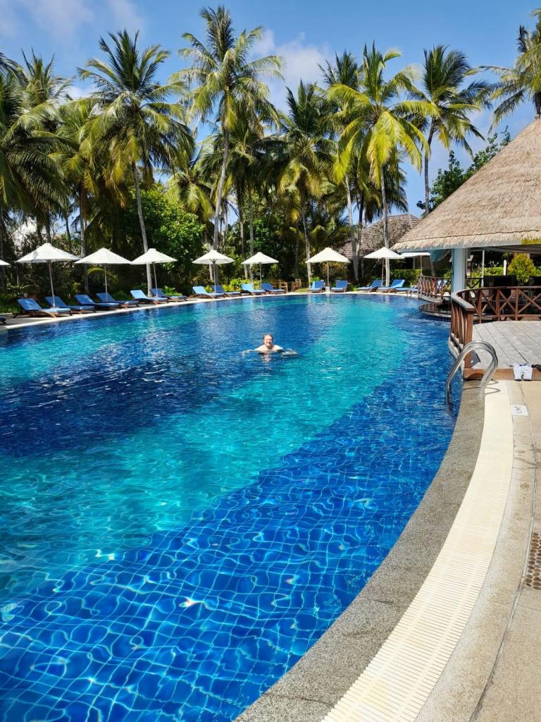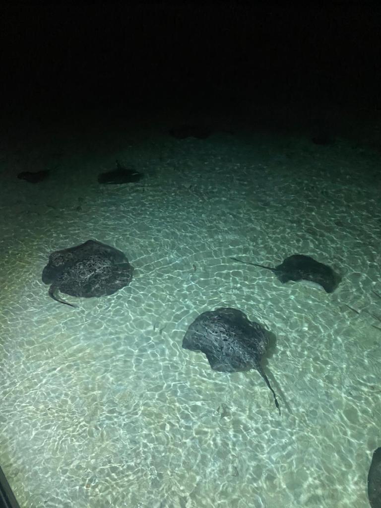 Our days followed a relaxing routine: we’d spend time at the pool, enjoy snorkeling off the beach, and sit outside our bungalow reading while our son took his naps. The water clarity was absolutely stunning; I’ve never seen anything like it. While just walking in the sea, ray sharks would swim right next to you , which was incredible. One of the holiday highlights was heading to the sea-view bars for sundowners. We loved watching the rays and sharks glide by just off the shore as dusk set in.
